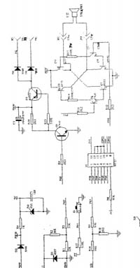 63 實用新型 多功能防盜喇叭 本實用新型為多功能防盜喇叭,包括揚聲器、上殼、下殼和電路板,上殼、揚聲器、電路板和下殼依次相連,電路板設置有微控制器、電源正單元、電門出電單元、振動傳感器單元、喇叭按鈕單元、閃光器輸出單元以及揚聲器單元,電源正單元分別與振動傳感器單元、閃光器輸出單元、揚聲器單元和微控制器的一個管腳(7)連接,電門出電檢測單元與微控制器的一個管腳(2)連接,振動傳感器單元與微控制器的一個管腳(9)連接,喇叭按鈕單元與微控制器的一個管腳(5)連接,微控制器的輸出管腳(3)與閃光器輸出單元連接,微控制器的控制管腳(1、14)分別與揚聲器單元連接,其結構小巧、簡單,安裝方便,實用性強,具有喇叭與防盜兩種功效于一體。