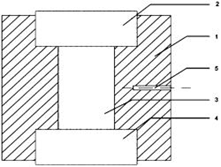 72 發明 一種用于壓力燒結的模具 本申請公開了一種用于壓力燒結的模具,包括主體部和壓頭,壓頭包括第一壓頭和第二壓頭,模具還包括第一蓋板和第二蓋板,第一蓋板和第一壓頭相連接,第二蓋板和第二壓頭相連接;主體部包括相互連通的第一蓋板孔、第二蓋板孔和壓頭孔,第一蓋板孔和第二蓋板孔分別位于壓頭孔軸向方向上的兩個端部,第一蓋板孔的孔徑以及第二蓋板孔的孔徑均大于壓頭孔的孔徑,第一蓋板孔用于容納第一蓋板,第二蓋板孔用于容納第二蓋板,壓頭孔用于容納第一壓頭和第二壓頭;第一蓋板與第一蓋板孔的底端之間存在間隙,第二蓋板與第二蓋板孔的底端之間存在間隙。如此設置,可以減小高溫壓力反應燒結過程中氣相物質的損失,充分完成燒結反應,得到理想粉末冶金材料制品。