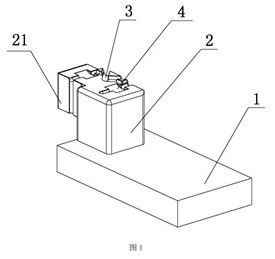 11 實用新型 生產M型玻璃卡夾用的模具 本實用新型公開了一種生產M型玻璃卡夾用的模具,屬于玻璃卡夾生產模具,包括模具底座(1)與固定在底座上方的模具支柱(2),所述的模具支柱(2)頂部設置有M型鑄槽(3),且M型的鑄槽中包含成品取拿槽(4),成品取拿槽(4)的寬度大于M型鑄槽(3)之任意部分的寬度。通過采用該模具,使用M型玻璃卡夾在加工生產中有規范,由于支柱頂部的M型鑄槽角度的統一,因此生產出的M型卡夾成品一致性高,支柱頂部設置的加寬成品取拿槽,方便從M型鑄槽中取出成品,實現了M型卡夾的批量生產,且生產效率高,且本實用新型的生產M型玻璃卡夾用的模具結構簡單,體積較小,適于工業化生產,易于推廣。