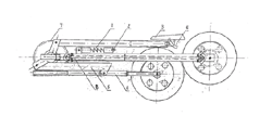 38 實用新型 便攜式自行車 一種便攜式自行車,它由已有的鏈條傳動自行車改為齒輪傳動,右腳蹬拐上的驅動彈片,驅動主動齒輪,通過前傳動齒輪,傳動軸和后傳動齒輪驅動后車輪向前動轉,齒輪傳動的目的是提高傳動速度比,使前后車輪縮小,在傳動速度為1∶15時前后輪的半徑縮小為90mm,速度可保持30公里/ 小時。車體為多向折疊。支撐部分順承重架折疊,車把腳蹬橫向折疊,通過車體的簡化縮小和折疊,使便攜式自行車能攜帶,易存放。