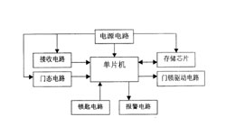 本實用新型涉及一種汽車防盜報警中控鎖。本實用新型由單片機及其所控制的接收電路、門態電路、鎖匙電路、門鎖驅動電路和報警電路以及給各部分電路提供工作電源的電源電路構成,通過單片機對接收電路、門態電流和鎖匙電流的檢測和對報警電路和門鎖驅動電路的控制,能夠實現在同一中控鎖設備中同時具備手動和遙控開鎖、閉鎖功能以及防盜和報警的功能,其結構簡單,功能齊全,安裝和使用操作都很方便,也節省了因購買和安裝多個設備產生的成本。