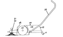 40 實用新型 手推式掃地車 一種手推式掃地車,它屬于一種掃地工具,尤其是一種人力手推、機械運動對地面進行清掃的手推式掃地車。本實用新型旨在解決現有清掃工具各自存在的適用范圍窄、成本昂貴、耗費人力、清掃效果差的缺陷,其技術方案是:該掃地車包括機殼(28)、扶手(29)、垃圾存儲箱(23)、主動滾輪(13)、滾刷(14、15),滾刷(14、15)位于機殼(28)內,滾刷軸與位于其兩側的主動滾輪(13) 軸齒連接,主動滾輪(13)的轉動帶動滾刷(14、15)運轉,垃圾存儲箱(23)位于滾刷(15)后方,為增強清掃效果在機殼前方還設置有一對向內旋轉的盤刷。