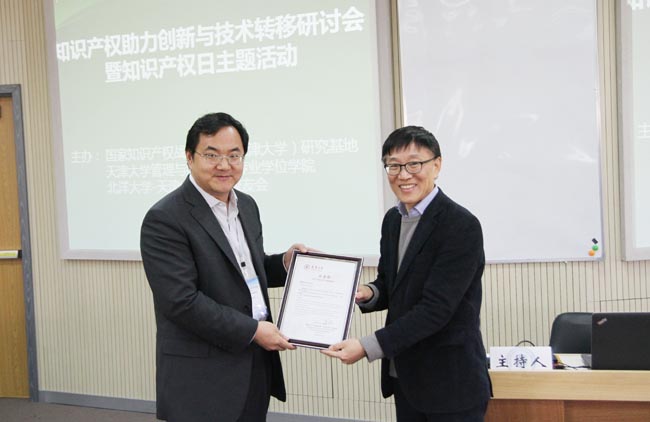 近日,天津大學管理與經濟學部、國家知識產權戰略實施(天津大學)研究基地聯合主辦知識產權日主題活動,集佳律師事務所李永波律師應邀參加學術報告會并做主題演講。會上,李永波律師被聘為專業學位研究生創業導師,管理與經濟學部張維主任為其頒發了聘書及感謝信。