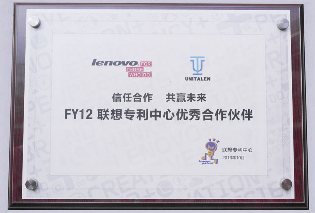 2013年底,聯想到訪集佳,并授予“信任合作 共贏未來 FY12聯想專利中心優秀合作伙伴”的牌匾。