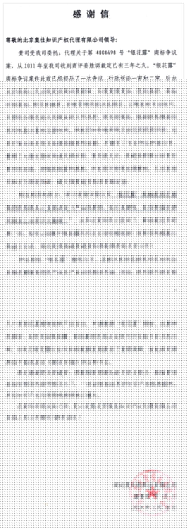 集佳律師曾代理該公司第4808698 號"銀花露"商標爭議案獲得全面勝利。該案案情復雜、經歷曲折、準備時間緊迫,該案的勝訴,在所有金銀花露、銀花露飲料等企業同行中引起了巨大的凡響,為銀花露行業今后的健康發展提供了重要保障。