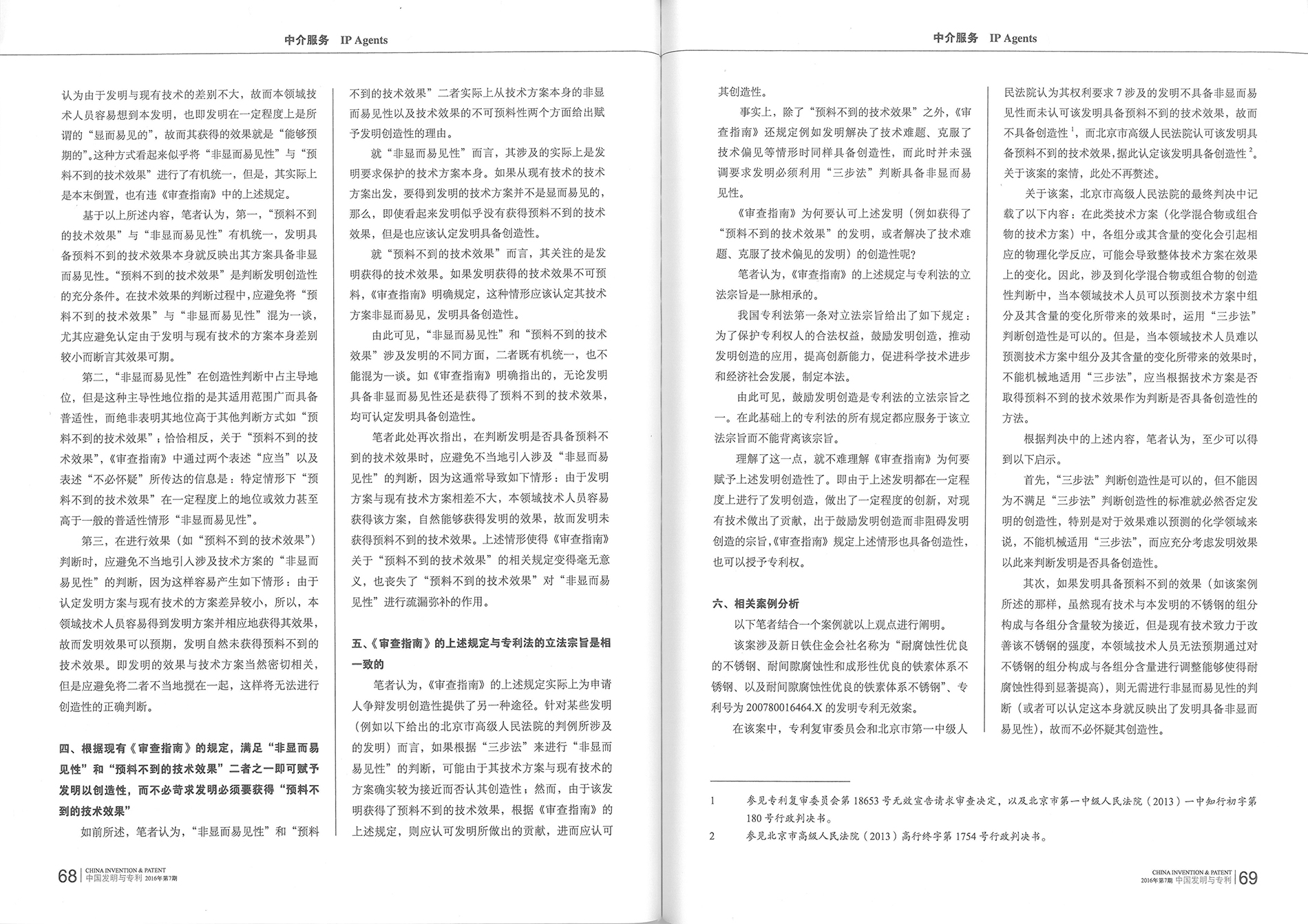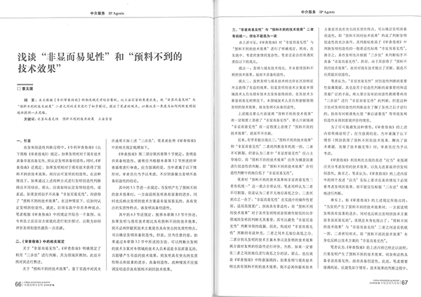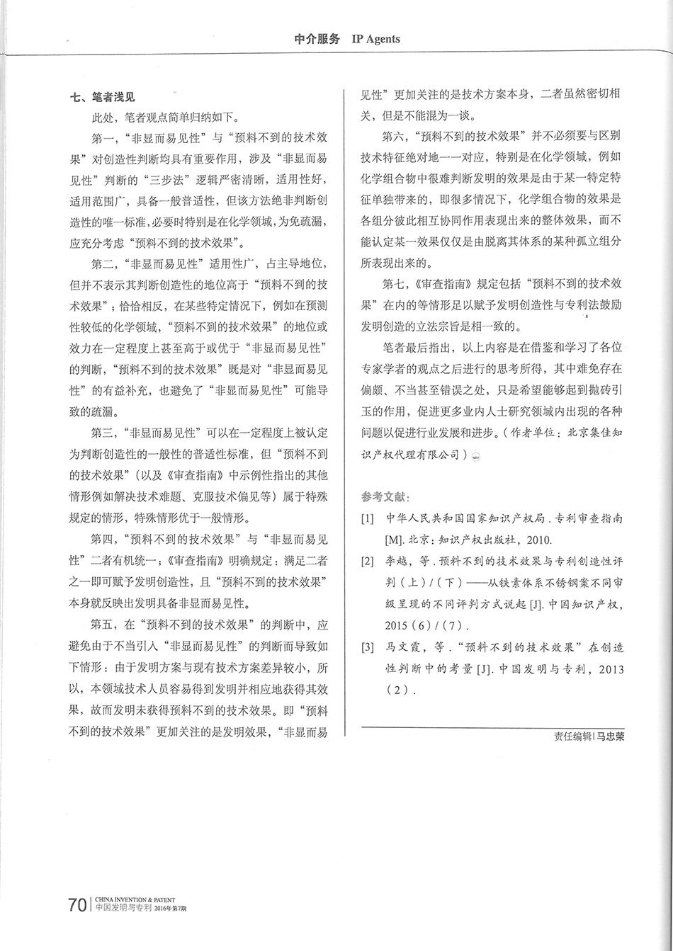 集佳文章《淺談“非顯而易見性”和“預料不到的技術效果”》在《發明與專利》發表