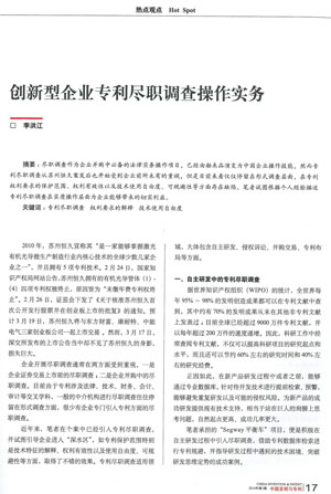 集佳律師撰文《創新性企業專利盡職調查操作實務》被《中國發明與專利》發表
