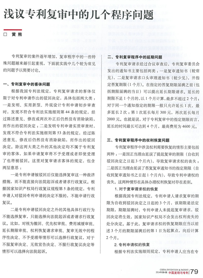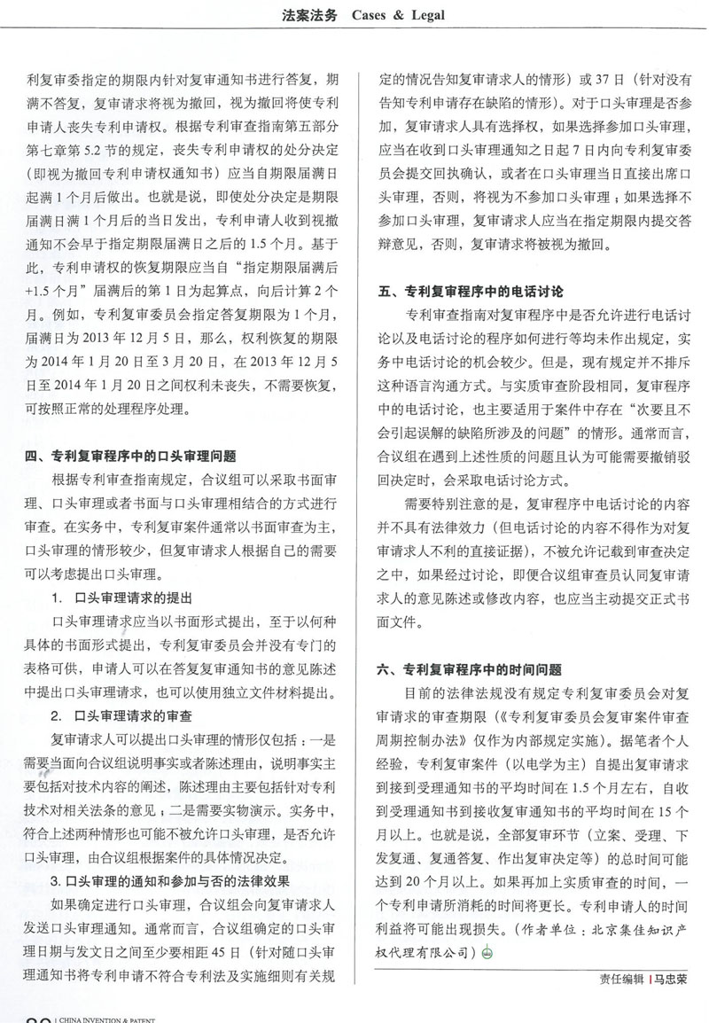 集佳代理人文章《淺議專利復審中的幾個程序問題》在《中國發明與專利》發表
