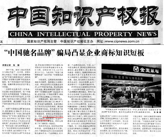 《中國知識產(chǎn)權(quán)報》:"中國馳名品牌"騙局凸顯企業(yè)商標知識短板