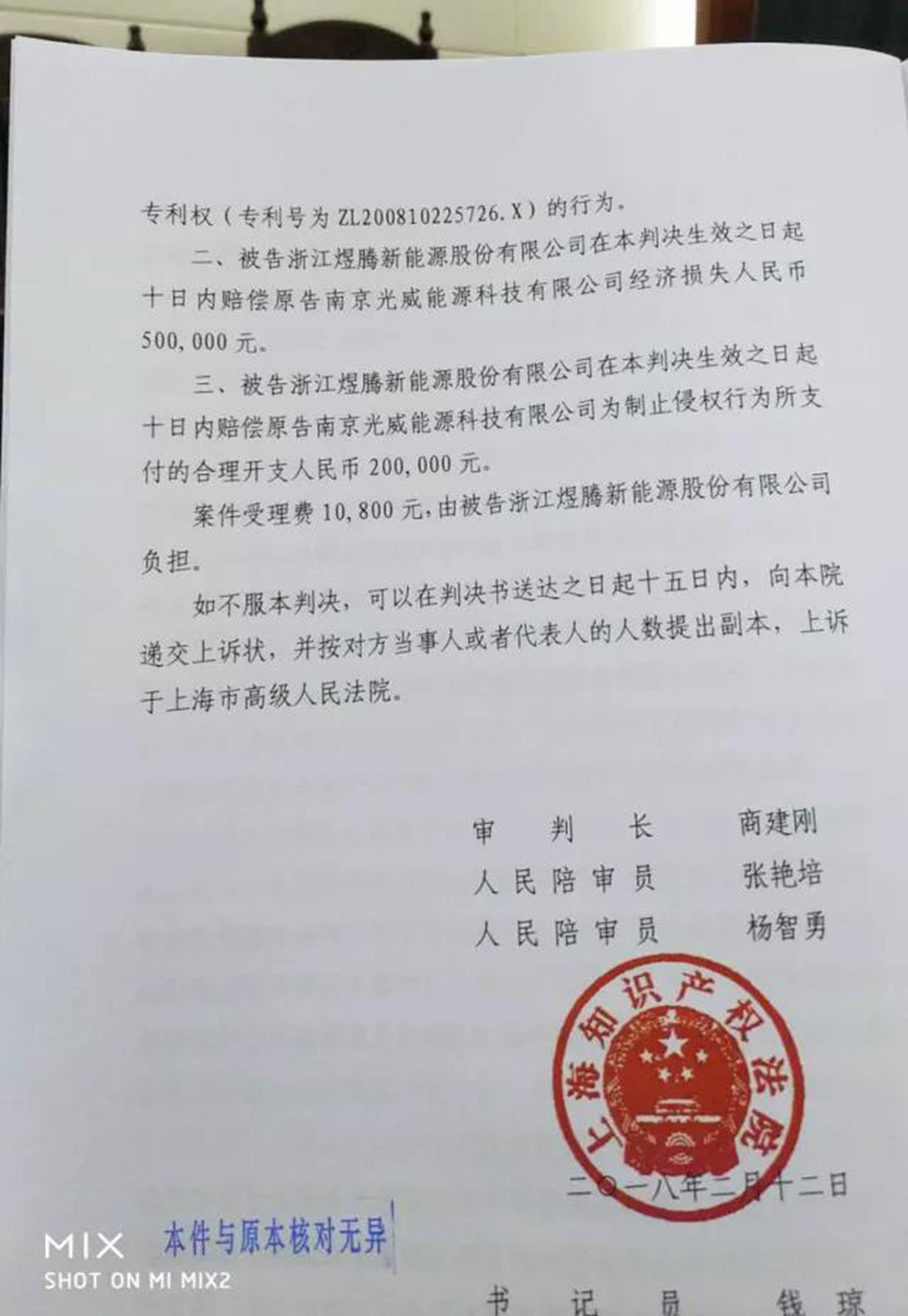集佳代理南京光威能源科技有限公司(以下簡(jiǎn)稱“光威公司”)訴浙江煜騰新能源股份有限公司(以下簡(jiǎn)稱“煜騰公司”)侵害發(fā)明專利權(quán)糾紛一案,經(jīng)上海知識(shí)產(chǎn)權(quán)法院一審查明事實(shí)后,于2018年2月12日宣判:被告煜騰公司制造、銷售、許諾銷售的被控“板式太陽(yáng)能集熱器產(chǎn)品”落入涉案專利權(quán)的保護(hù)范圍,被告在判決生效之日起停止侵害涉案發(fā)明專利權(quán)的行為,并全額支持了原告主張的侵權(quán)損害賠償及合理開(kāi)支。