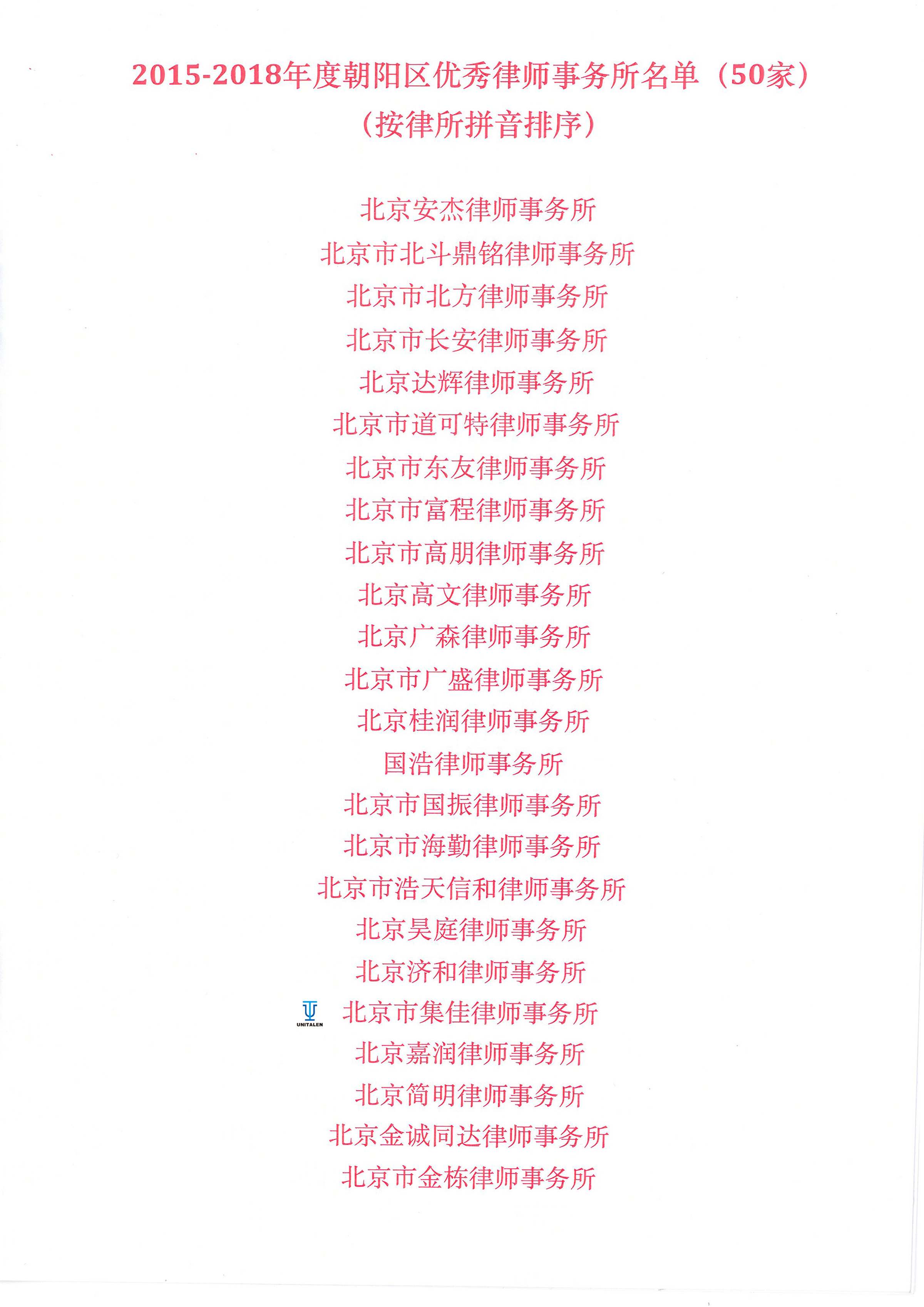 日前,朝陽區(qū)律師協(xié)會(huì)公布了2015-2018年度朝陽區(qū)優(yōu)秀律師事務(wù)所和優(yōu)秀律師的名單,集佳律所和集佳律師均位列其中。