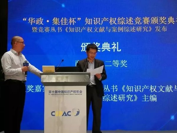 9月3日下午,在第十屆中國知識產權年會活動期間,由華東政法大學知識產權學院主辦、知識產權出版社和北京市集佳律師事務所上海分所助力并協辦的第五屆“華政?集佳”杯知識產權綜述競賽頒獎典禮暨競賽叢書發布活動在杭州成功舉辦。