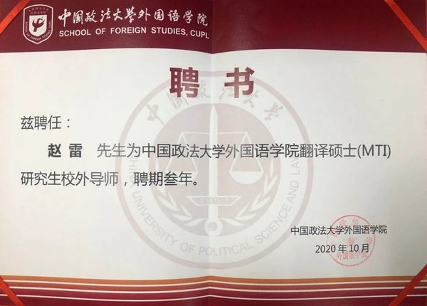 集佳高級合伙人趙雷律師應邀參加中國政法大學法律與翻譯文化節并受聘研究生校外導師