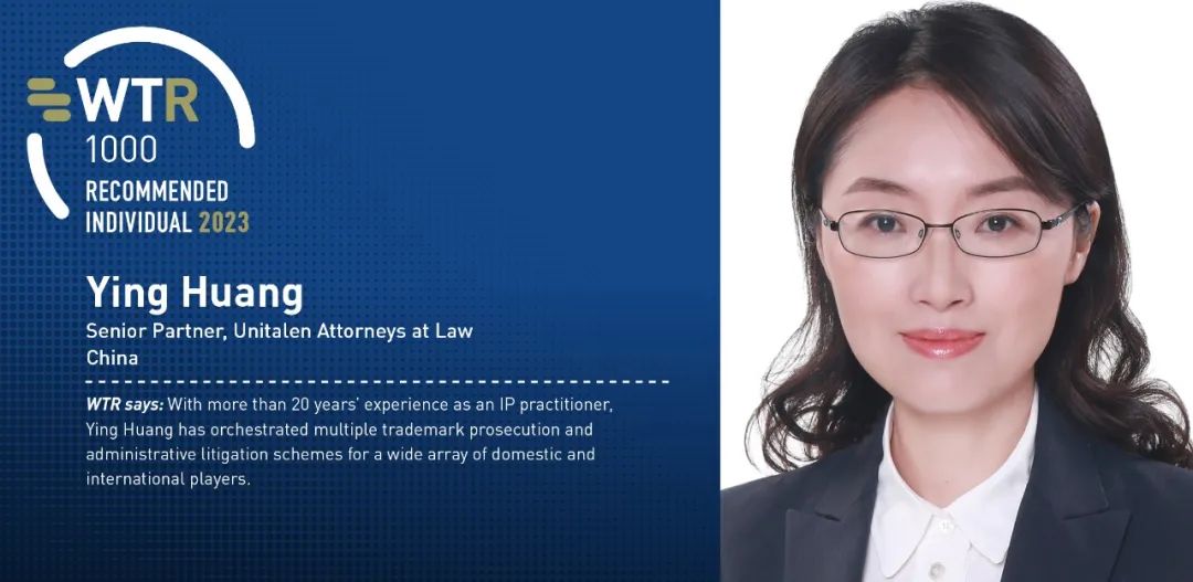 WTR評價:“黃鶯律師擁有超過20年知識產權從業經驗,曾為眾多國內企業和來自歐洲、韓國、南非和美國的國際企業策劃商標申請和行政訴訟方案。”