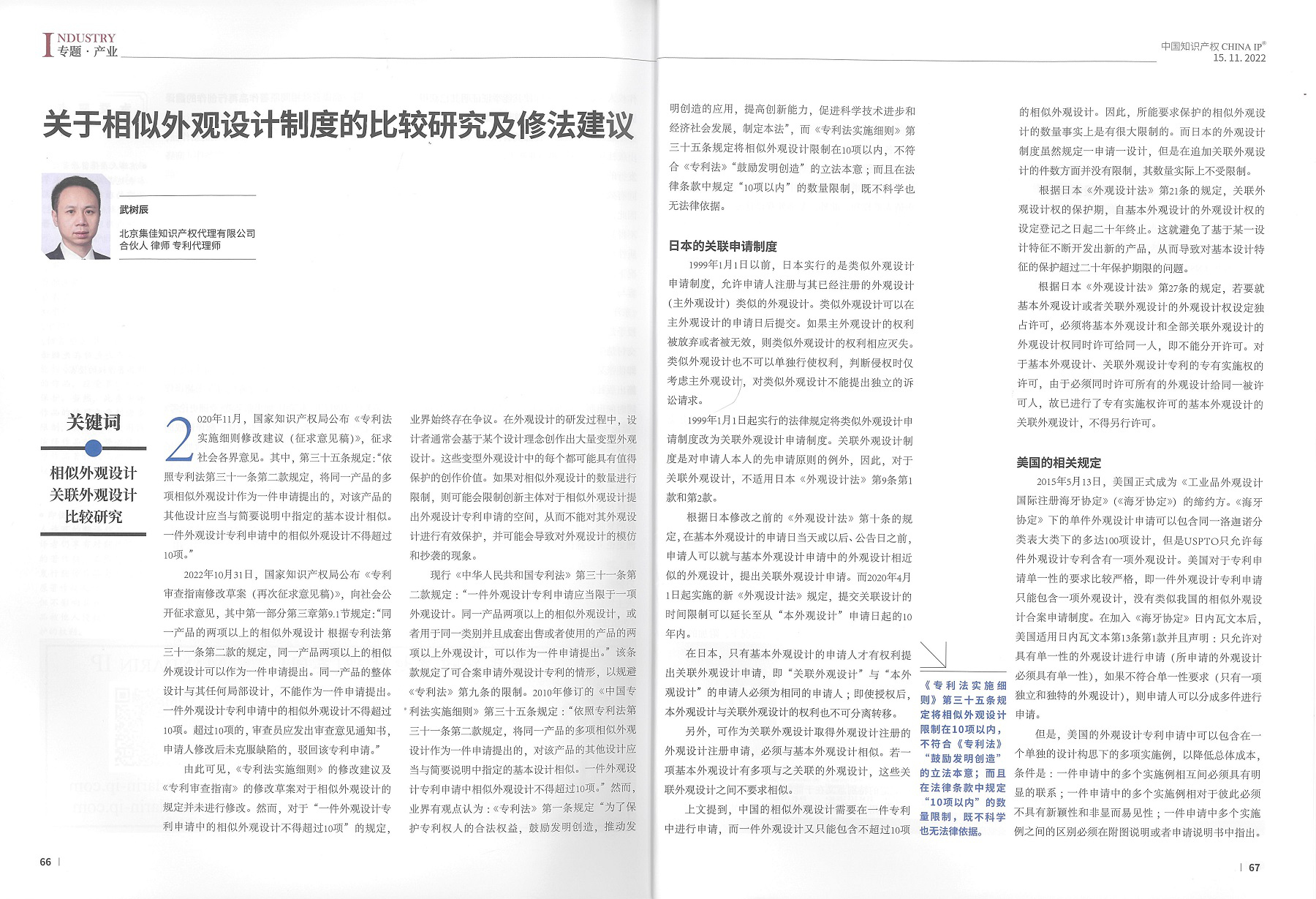 集佳文章《關(guān)于相似外觀設(shè)計制度的比較研究及修法建議》在《中國知識產(chǎn)權(quán)》發(fā)表