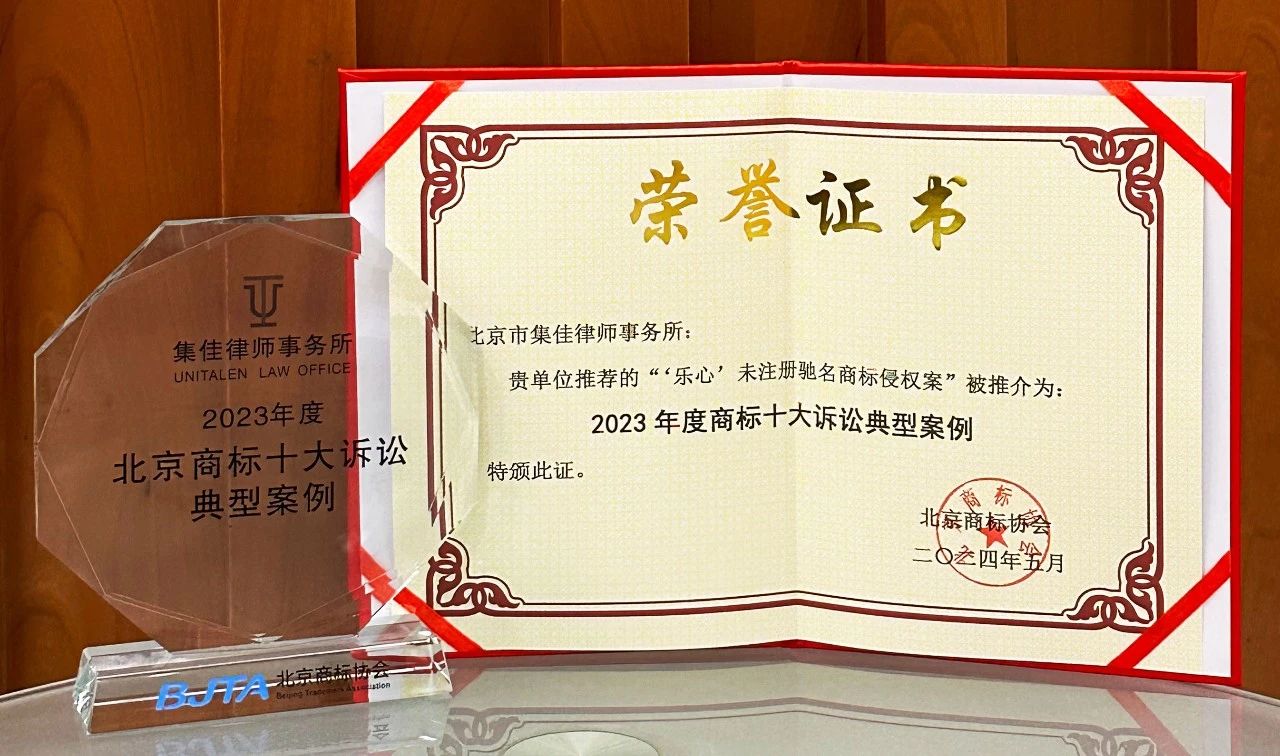 集佳代理2個案例入選北京商標協(xié)會2023年度商標十大訴訟與非訴典型案例