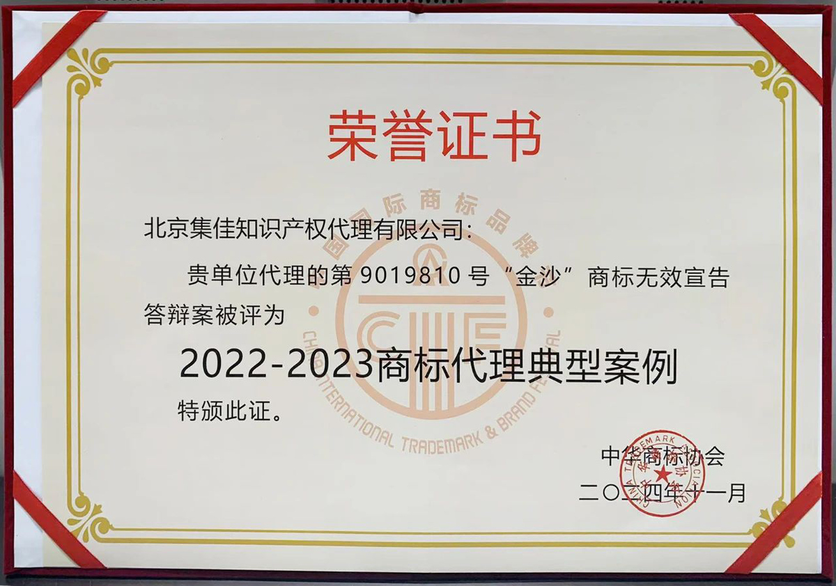 2024年11月24日下午,在商標節(jié)經(jīng)典論壇之一的商標典型案例評析會議上,北京市集佳律師事務所代理的“金沙”商標權無效宣告答辯案入選“2022-2023商標代理典型案例”。